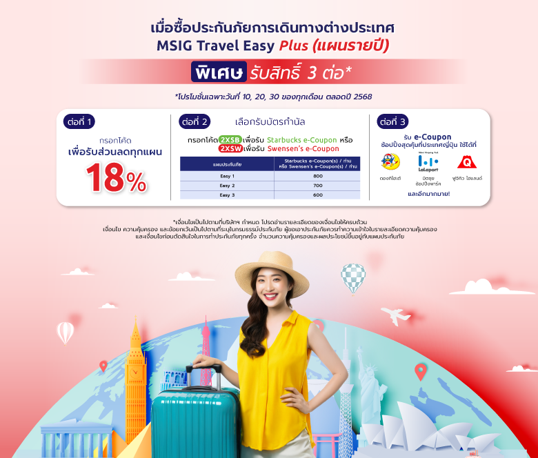 ประกันภัยการเดินทางต่างประเทศ MSIG Travel Easy Plus